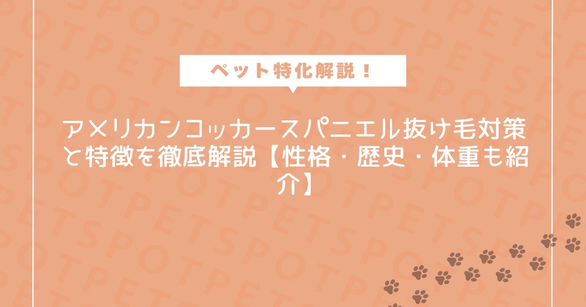 アメリカンコッカースパニエルは、豊かな被毛と明るい性格で家族を笑顔にしてくれる犬種ですが、「アメリカンコッカースパニエル 抜け毛」の多さはしっかりケアが必要です。