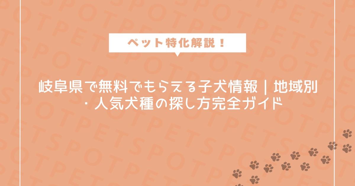 岐阜県で無料でもらえる子犬をお探しの方へ、最新情報とともに、地域別・価格別・人気犬種ごとにおすすめの探し方や注意点をわかりやすくご紹介します。「岐阜県で無料でもらえる子犬」を見つけたい方が安心して理想の子犬と出会えるよう、実用的なノウハウとともに、犬種ごとの特徴や入手時に気をつけることも網羅。家族に新しい笑顔を迎えるための第一歩として、この記事を参考にしてください!