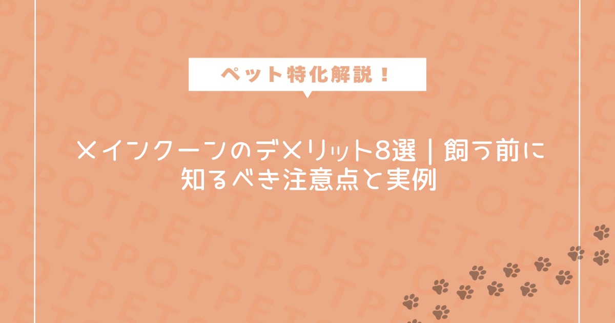 ふさふさの被毛と堂々とした体格で人気のメインクーン。しかし、その魅力の裏側には「メインクーン」と呼ばれる注意点も存在します。初めて大型猫を飼う方や、家族に迎えようと検討中の方にとって、メリットだけでなくリスクや対策まで知っておくことが大切です。本記事では、メインクーンの特徴・性格から、実際のデメリット、費用、健康管理、さらには飼育でよくある疑問まで徹底解説します。メインクーンとの幸せな生活のために、ぜひ最後までご覧ください!